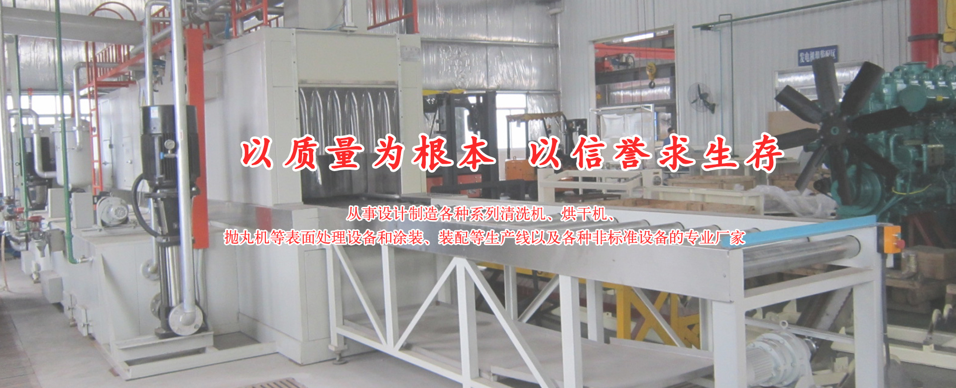 從事設計制造各種系列清洗機、烘干機、拋丸機等表面處理設備和涂裝、裝配等生產線以及各種非標準設備的專業廠家。